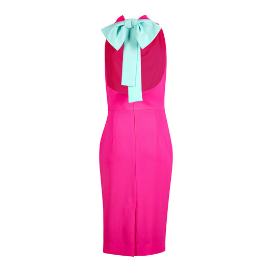 Champagne Pink Satin Halter Neck Back Ribbon Dress