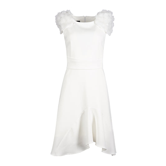 Champagne Tulip Twist Crepe Dress with Thin Black Belt